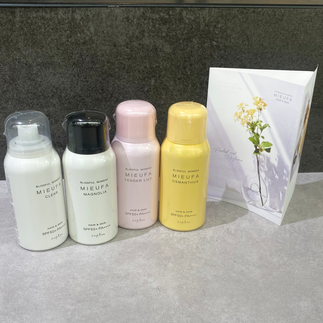 お肌や全身以外に、髪にも使うことかでき、香りとケアにこだわったスプレータイプのし日焼け止めです!
